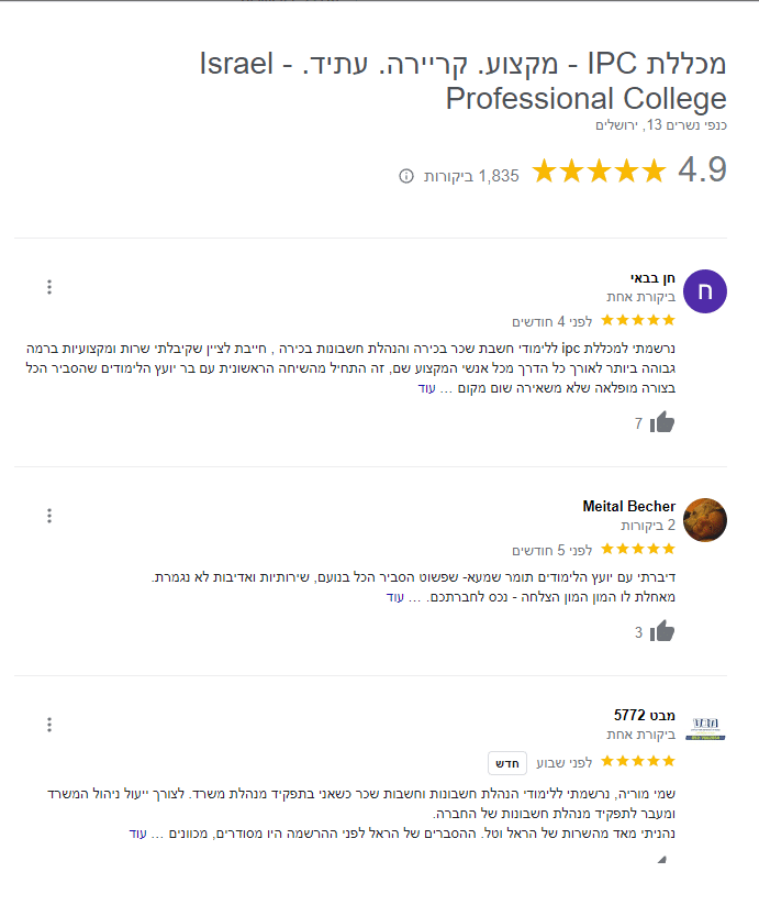אנחנו המכללה המובילה בישראל במדד ביקורות..